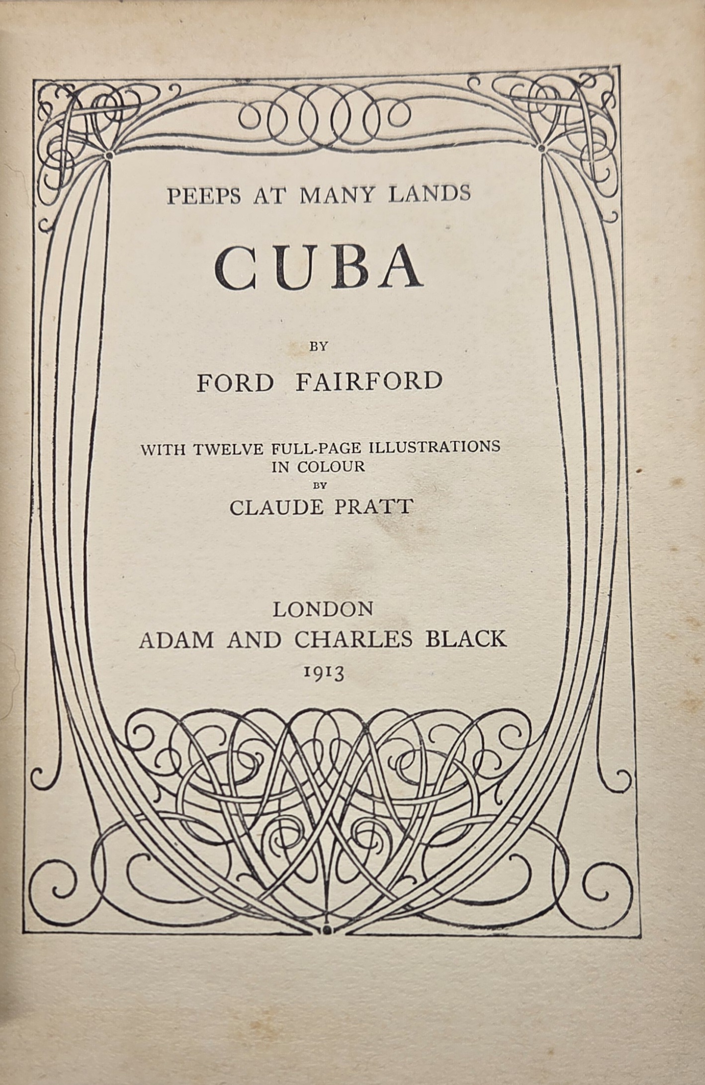 Cuba (Peeps at Many Lands) by Ford Fairford is an early twentieth-century introduction to the island of Cuba written for younger readers. The book presents Cuba as a vibrant Caribbean country, describing its geography, climate, cities, and countryside in clear and engaging language. Fairford outlines everyday life on the island, including customs, occupations, and social traditions, while also touching on Cuba?s history and its position in the wider world. Particular attention is given to agriculture and trade, especially sugar, tobacco, and fruit, which shaped the island?s economy at the time. The text reflects contemporary British perspectives and provides a snapshot of Cuba in the years following independence from Spain. The volume is illustrated with colourful plates by Claude Pratt, whose images depict landscapes, street scenes, and local life, helping readers visualise the country. Together, text and illustrations offer an informative and accessible portrait of Cuba for its intended audience.