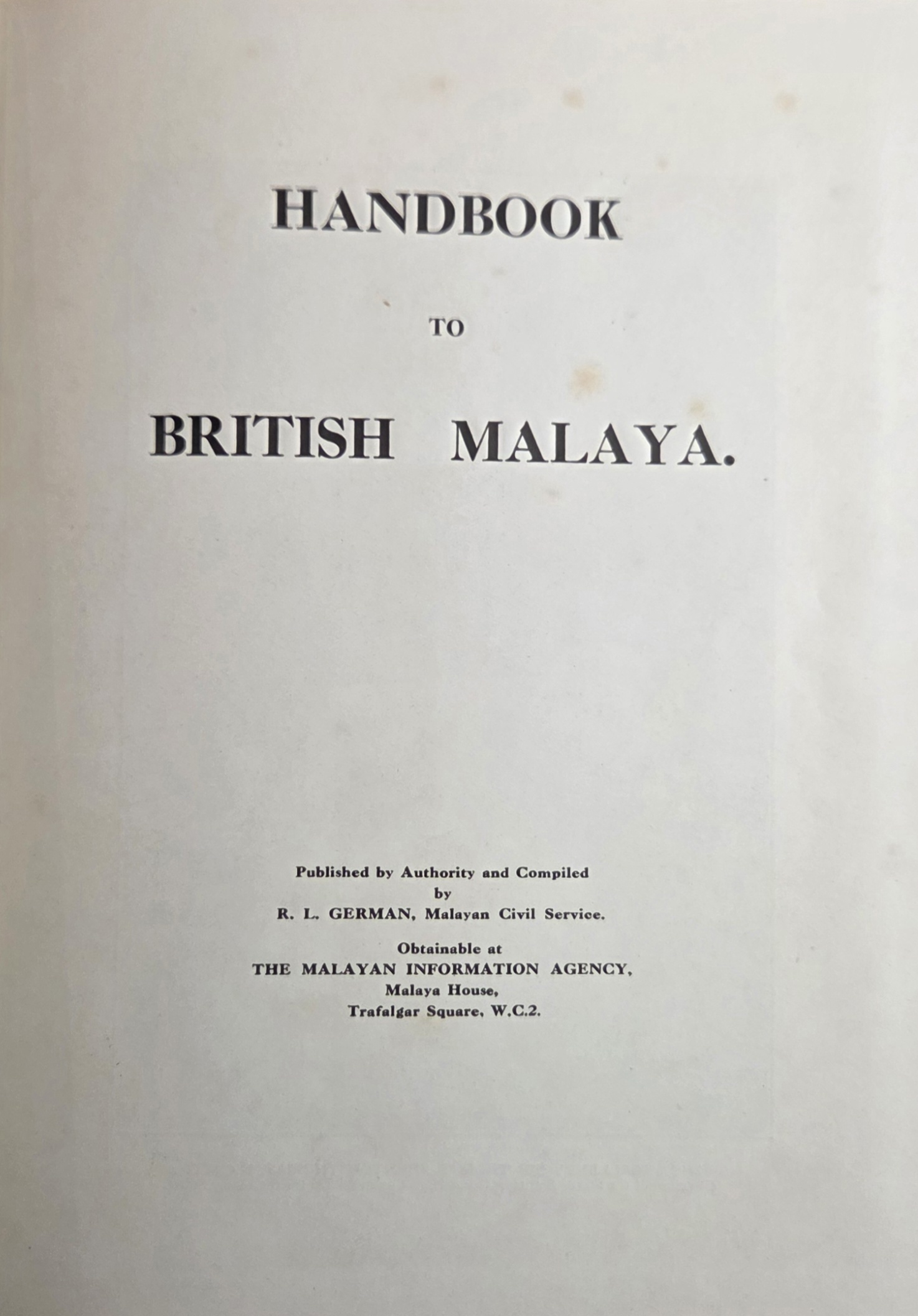 Handbook to British Malaya by R. L. German (1937 edition) is a comprehensive colonial reference work produced during the later years of British administration in the Malay Peninsula. Compiled by a member of the Malayan Civil Service, the handbook was designed to provide officials, businessmen, and informed travellers with an authoritative survey of the country’s conditions and prospects.