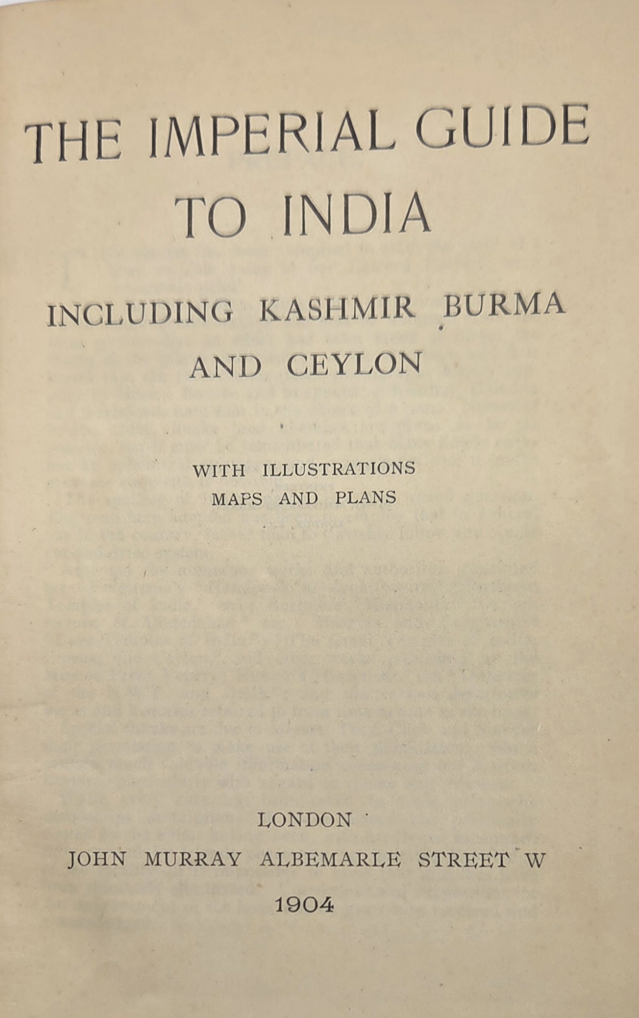 The Imperial Guide to India, Including Kashmir, Burma and Ceylon, With Illustrations, Maps and Plans was published by John Murray in 1904 as a comprehensive reference and travel guide for British India and adjacent regions. This extensive work provides detailed descriptions of geography, history, culture, administration, and infrastructure across India, Kashmir, Burma (now Myanmar), and Ceylon (now Sri Lanka).