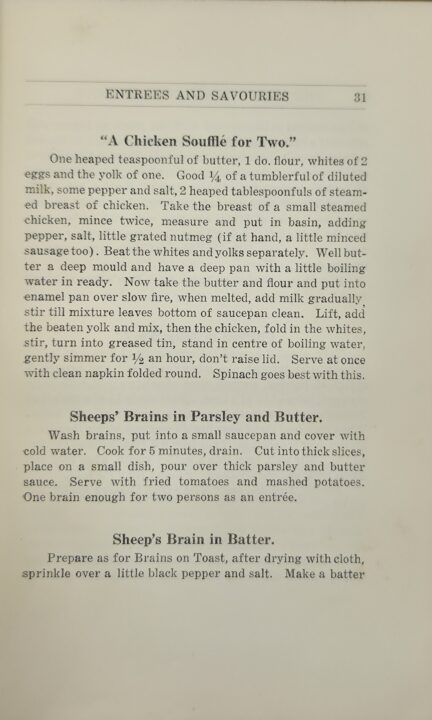 The Next Meal Cookery Book is the scarce companion to The Mem’s Own Cookery Book, published seven years later with all new recipes, cross referenced to the third edition of The Mem’s Own Cookery Book and written in the same way. Here the recipes are not segregated by origin.