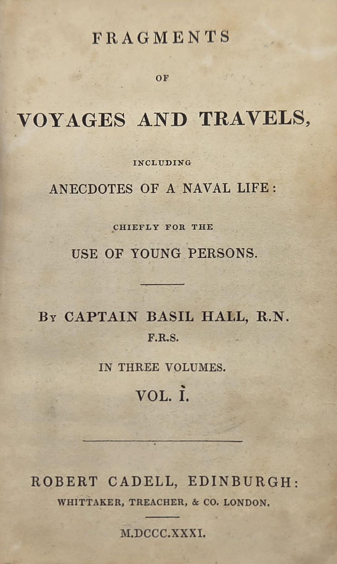 Basil Hall, Fragments of Voyages and Travels: Chiefly for the Use of Young Persons is a 19th-century travel work designed to educate and inspire young readers. Basil Hall (1788-1844) was a Scottish naval officer and travel writer who journeyed widely across Asia, the Americas, and Europe. Drawing from his naval experiences, he wrote this book to present engaging, morally instructive accounts of foreign lands, cultures, and historical events in a style accessible to young people.