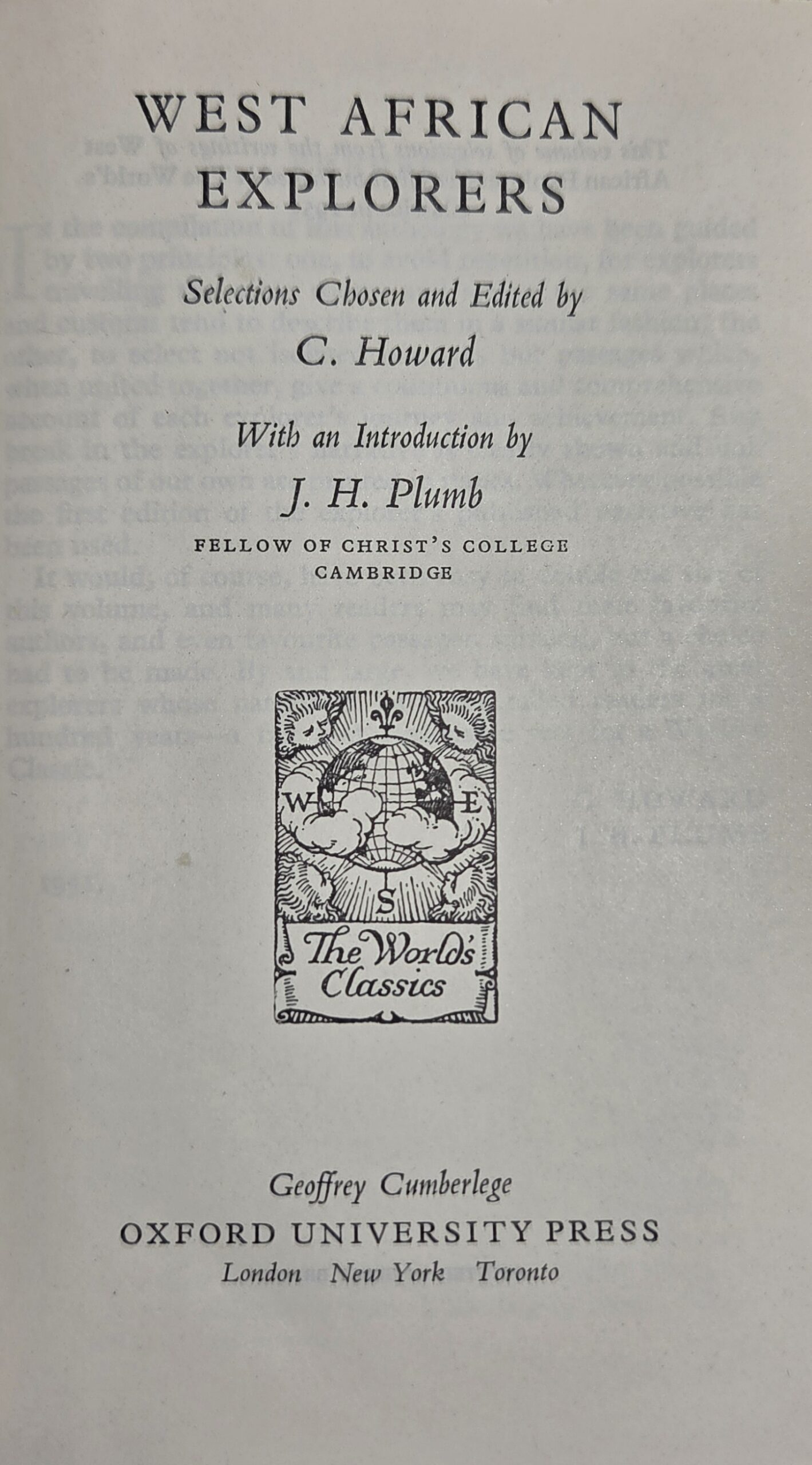 West African Explorers is an edited volume compiled by C. Howard, presenting accounts and narratives of European exploration in West Africa. The book collects firsthand reports, letters, and journals from explorers who traveled across the region from the late 18th to the 19th centuries, providing insights into the geography, peoples, cultures, and natural history of West Africa.